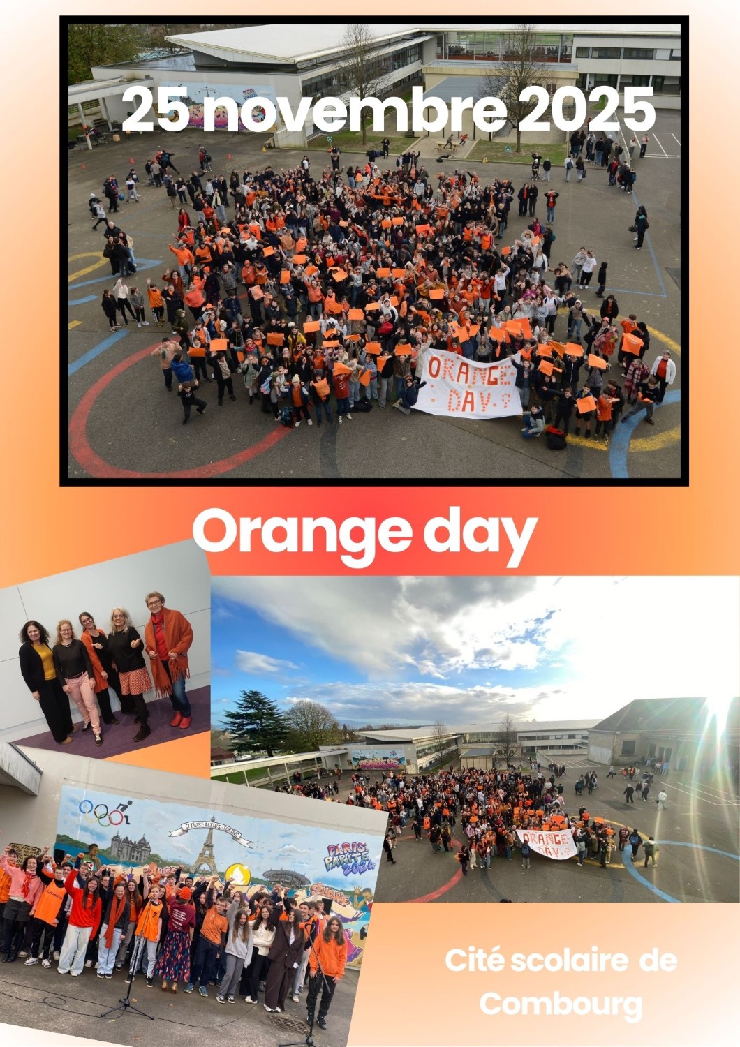 Vendredi 25 novembre, à l’occasion de l’« Orange Day », les élèves et professeur de la cité scolaire étaient vêtus d’orange pour participer à la journée internationale de lutte contre les violences faites aux femmes.